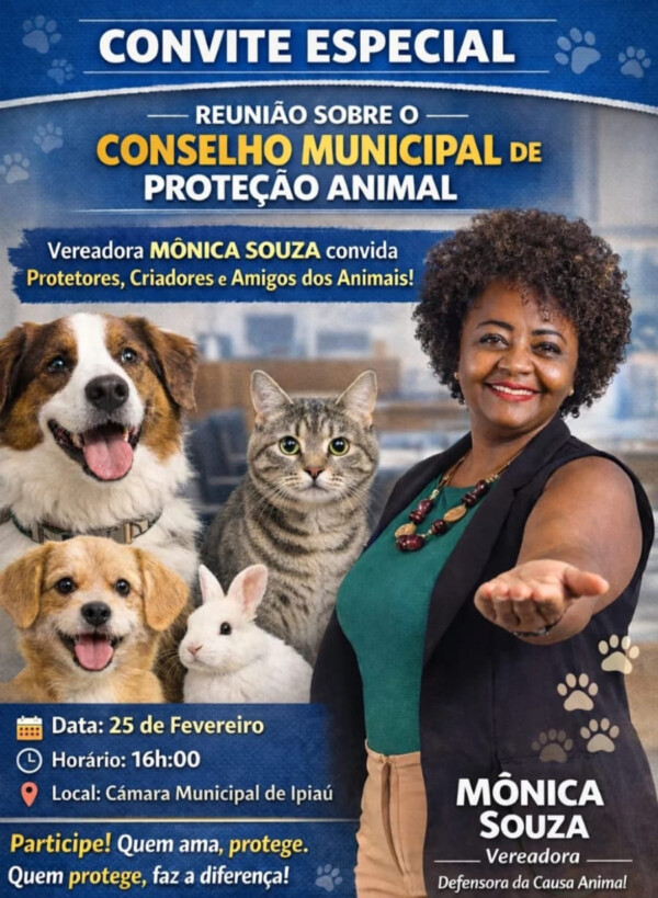 A pauta da proteção animal ganha um novo capítulo em Ipiaú com a convocação de uma reunião estratégica para discutir o Conselho Municipal de Proteção Animal. O evento, de iniciativa da vereadora Mônica Souza — reconhecida defensora da causa no município —, busca reunir protetores independentes, criadores e entusiastas da temática para alinhar políticas públicas voltadas ao bem-estar dos animais locais.