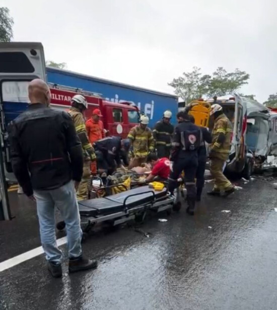 De acordo com informações colhidas no local, a colisão ocorreu em um momento de pista molhada devido às chuvas que atingem a região. Imagens de populares mostram que o caminhão atingiu violentamente a parte traseira da ambulância. Com o impacto, ao menos três pessoas ficaram feridas.