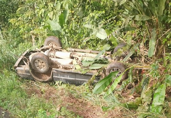 Uma caminhonete ocupada por cinco pessoas capotou em um trecho da BA-120, no município de Ibirataia, sentido ao distrito de Algodão. O acidente foi registrado por volta das 16h deste sábado. O motorista perdeu o controle da direção após uma curva e o veículo capotou às margens da rodovia. Os ocupantes, todos moradores do município de Ibirataia, tiveram pequenos ferimentos e foram amparados por populares. Um vídeo gravado no local do acidente e compartilhado nas redes sociais mostra como a caminhonete ficou destruída.