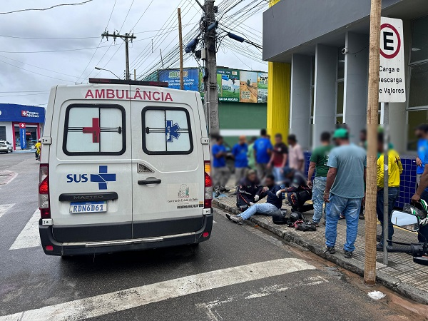 Motociclistas ficam feridos após acidente em faixa de pedestre no centro de Ipiaú