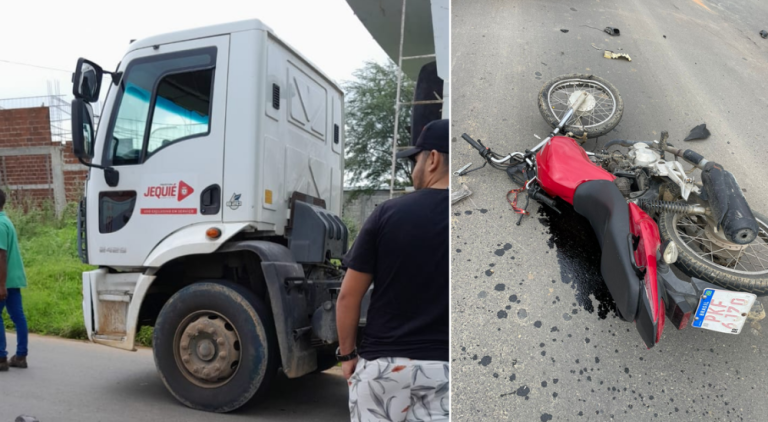 Acidente entre moto e caçamba que presta serviço à Prefeitura deixa dois feridos no anel viário de Jequié