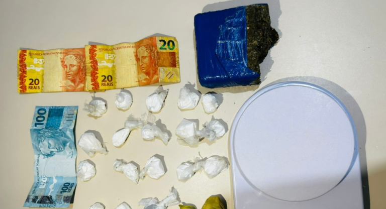 Em ação contínua, a PM deteve outro suspeito, que segundo à polícia teria ligação direta com o homem preso anteriormente e com ele foram encontradas 10 porções de maconha; uma pedra de cocaína; 01 balança de precisão; e 01 aparelho celular.