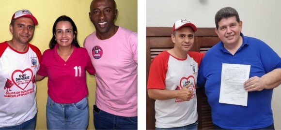 Representantes do grupo de voluntários sociais Parceiros do Bem, doadores de sangue de Ipiaú, foram até os candidatos a prefeito das cidades de Ipiaú, Ibirataia, Itagibá, Barra do Rocha, Ubatã e Dario Meira com o objetivo de pedir um compromisso de todos (caso eleitos) no termo proposto pelo grupo que luta para obter apoio em realizações de campanhas de conscientização e incentivo à doação de sangue.