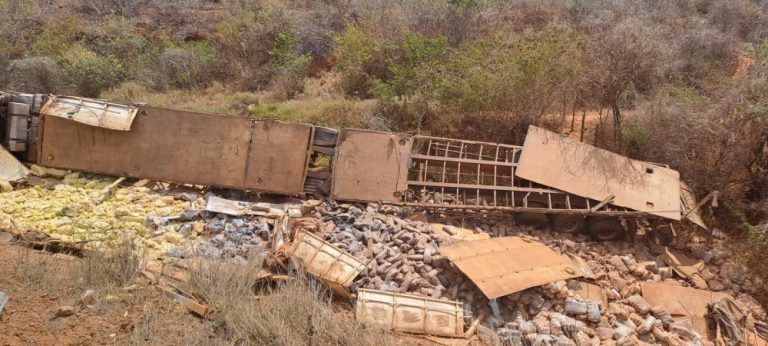 Home Ocorrências Políciais Maracás: Caminhão com carga de alimentos tomba em Pé de Serra e motorista é retirado das ferragens