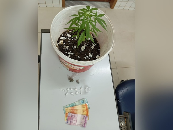 Na abordagem, os agentes de segurança se depararam com o suspeito portando uma quantia em dinheiro, duas pequenas doses de maconha e nove invólucros de cocaína. Ademais, dentro da residência, foi encontrado um pé de maconha cultivado em um vaso. Com base nas provas obtidas, o material coletado e o suspeito foram levados à Delegacia de Polícia (Depol) local, onde a ocorrência foi oficializada. ( Ipiaú TV)