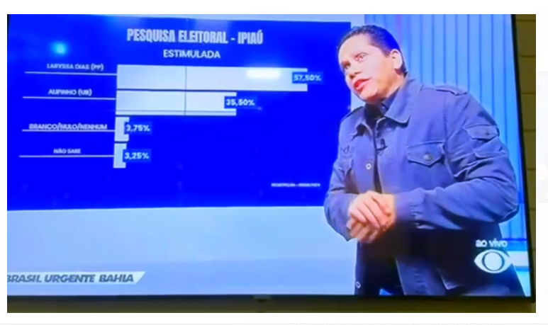 Uma pesquisa eleitoral foi divulgada na noite desta segunda-feira (30) no programa Brasil Urgente Bahia, encomendada pela Rádio e Televisão Bandeirantes da Bahia. Os dados apresentados mostram que Laryssa Dias, do Partido Progressista (PP), obteve uma significativa preferência de 57,50% dos votos. Em contrapartida, Alipinho da Doce Mel, do União Brasil (UB), registrou 35,50%. No entanto, houve um erro na distribuição amostral, o que é crucial para a metodologia da investigação. A pesquisa foi registrada no Tribunal Superior Eleitoral (TSE) sob o número BA-08989/2024.
