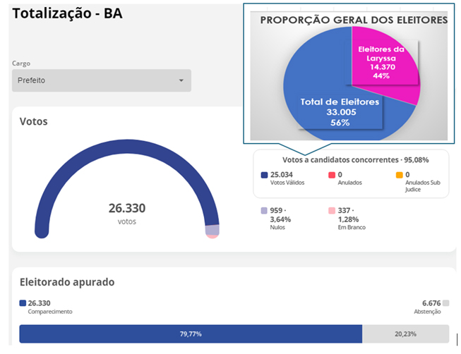 Ipiaú chega em 2025 com um “novo” governo e um grande dilema em tela, a ser testado e equacionado. A candidata da Flávia Mendonça (PP) foi legitimamente eleita, e daí, que cenário político enfrentará a Laryssa Dias, como nova prefeita de Ipiaú, com apenas impressionantes 14.370singelos 44% votos totais? Uma vitória robusta, de lavada, dirão os entusiastas pagos, negacionistas de plantão nas redes sociais, os tais dependentes beneficiários. Mas antes de alardearem “vitória absoluta” com frases orquestradas, ensaiadas pela infantaria, seguidas de aplausos e memes de oba-oba desamparados da realidade fática, vamos esmiuçar o que isso significa na prática, de verdade, em números absolutos irrefutáveis.