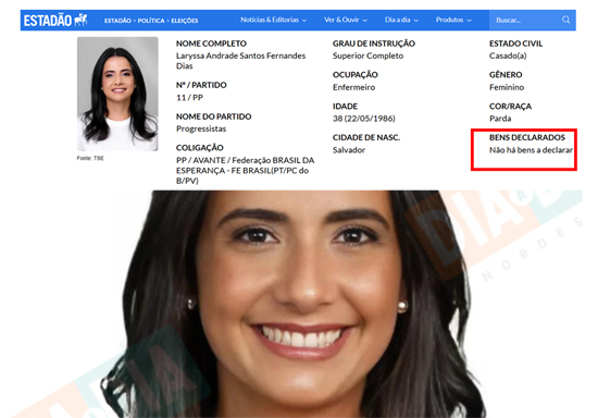 Autodeclarada sem patrimônio até então, Laryssa é formada em enfermagem, o que a torna, teoricamente, mais “bem preparada” do que a atual prefeita, Maria das Graças, cobra criada soteropolitana, que possui apenas a 4ª série do antigo primeiro grau, conforme declarou ela mesma ao TSE.