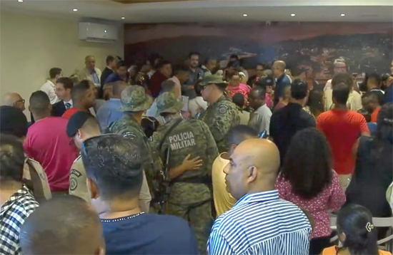 A sessão foi presidida interinamente pelo vereador Cláudio Nascimento, que exigiu a apresentação física dos diplomas de eleitos para que os vereadores pudessem tomar posse. O pedido gerou indignação entre o grupo de sete vereadores liderado por Edson Marques (Avante), também candidato à presidência da Câmara. Segundo os parlamentares desse bloco, a exigência nunca havia sido feita em uma sessão de posse anterior e foi interpretada como uma manobra política para impedir a participação deles no processo.