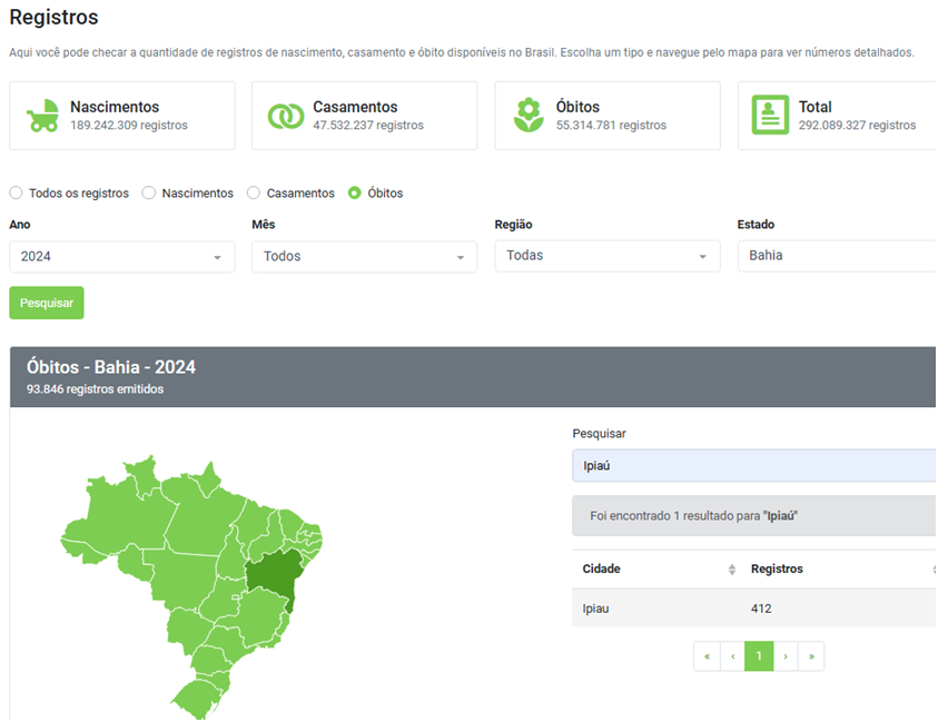 Segundo o Painel do Portal de Transparência dos Registros Civis do Brasil, em 2024, houve 412 óbitos na cidade de Ipiaú, localizada no sul da Bahia. No entanto, há um registro curioso: segundo os registros contábeis da prefeitura local, o município gastou com urnas funerárias o equivalente a R$ 971.479,28, o que daria um valor unitário de R$ 2.357,96 por falecido, caso, e somente se, todos os enterros da cidade tivessem sido custeados pela prefeitura local, o que parece não ocorrer.