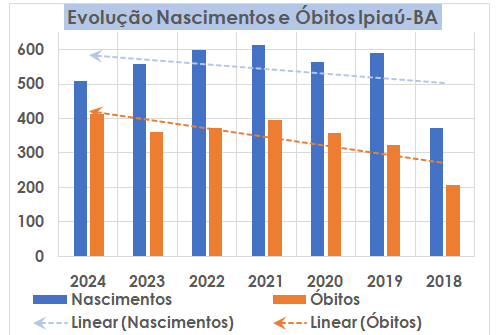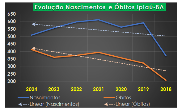 Nascimentos e Óbitos em Ipiaú Seguem Tendências Opostas em 2024 e Reforçam Dinâmicas Distintas Desde 2018