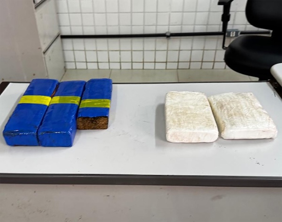 Durante uma operação de rotina, um veículo, ao perceber a presença da guarnição, parou a aproximadamente 100 metros do ponto de fiscalização e empreendeu fuga. Após a evasão, os agentes localizaram uma sacola abandonada contendo três tabletes de maconha e dois de cocaína, totalizando cerca de 5kg de entorpecentes.