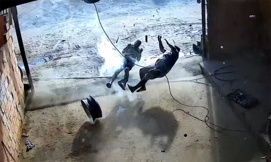 Imagens registradas por uma câmera de segurança instalada na borracharia mostram o exato momento da explosão. No vídeo, o proprietário do estabelecimento se aproxima primeiro do pneu e chama seu sobrinho para ajudá-lo. Pouco depois, enquanto ambos se abaixam para inspecionar a peça, ocorre a explosão, lançando os dois borracheiros no chão.
