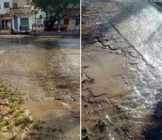 Há mais de dez dias, um esgoto jorrando na Praça do Honório tem causado transtornos para comerciantes, moradores e transeuntes da região. A situação, que afeta diretamente o comércio local, é especialmente crítica para estabelecimentos que lidam com produtos perecíveis, como uma hortifruti, uma padaria e uma lanchonete.