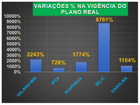 A taxa básica de juros (Selic) acumulou uma valorização impressionante de 8.761% no período. Comparativamente, a gasolina e a caderneta de poupança registraram altas de 1.774%, enquanto o IPCA, índice oficial de inflação, alcançou 728%.
