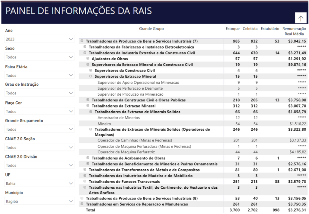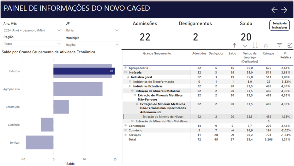 Apesar do bom desempenho da indústria mineradora de Itagibá, que tem na mineração uma de suas principais atividades econômicas, a média dos salários não tem acompanhado a evolução proporcional do faturamento do setor. Informações recentes da RAIS (Relação Anual de Informações Sociais) e do Novo CAGED (Cadastro Geral de Empregados e Desempregados) trazem um panorama detalhado das condições de emprego e dos salários do setor, mostrando recuos e desafios para os trabalhadores locais.