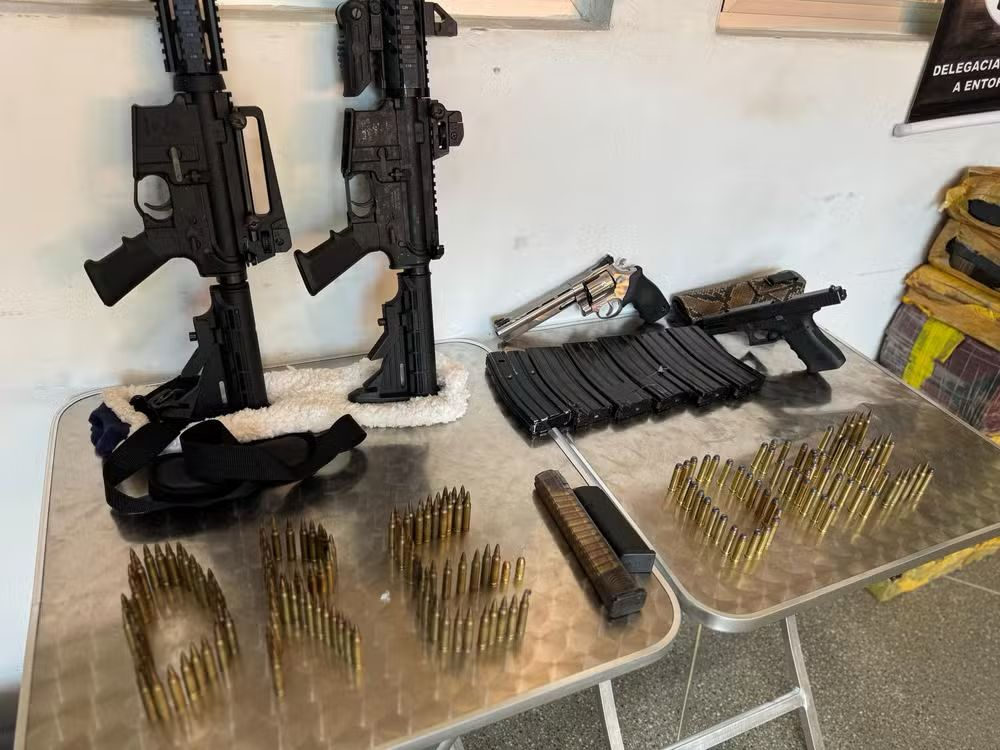 Foram apreendidos 388,7 kg de maconha, 10,7 kg de cocaína, dois fuzis calibre 5.56, uma pistola e um revólver, além de munições e carregadores.