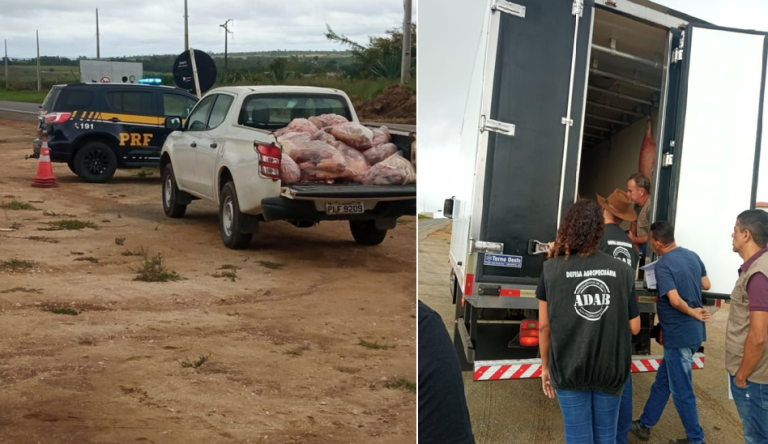 Uma operação conjunta de fiscalização agropecuária, na BR 420, entroncamento de Jaguaquara, apreendeu nesta quinta-feira (27), produtos oriundos de abate clandestino. A ação, coordenada pela Agência de Defesa Agropecuária da Bahia (Adab), envolveu as polícias Militar (PM-Ba) e Rodoviária Federal (PRF), além da Vigilância Sanitária do município.