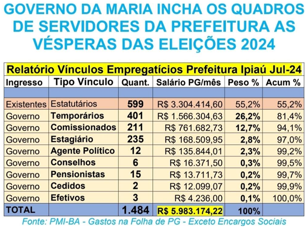 Nesta semana, as redes sociais de Ipiaú foram tomadas por manifestações contrárias à persistência, na política local, da velha prática de vereadores que exigem cargos na prefeitura. Esses cargos não são necessariamente para trabalhar, mas para garantir a nomeação de seus indicados, que são inseridos permanentemente na folha de pagamento do município — uma suposta “rachadinha” conhecida como Biribiri —, supostamente como parte do toma lá, dá cá, base de sustentação de governos.