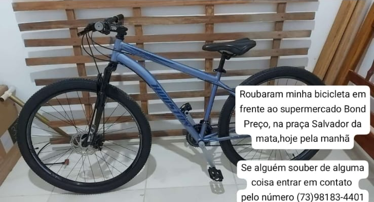 Na manhã desta quarta-feira (05), mais uma bicicleta foi furtada em Ipiaú, desta vez em frente ao Bond Preço Supermercado, localizado na Praça Salvador da Mata, no centro da cidade.