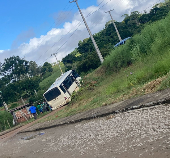 Na manhã deste sábado (08), um ônibus ficou atolado ao tentar subir uma ladeira que dá acesso à BR-330, na Rua Jonilton Rocha, no bairro César Borges, em Ipiaú. O veículo ficou preso em um trecho de cascalho ainda não pavimentado, dificultando a passagem de outros motoristas.
