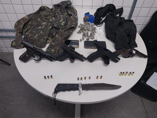 Com os suspeitos, a polícia informou ter apreendido três pistolas, um revólver, uma faca, um aparelho celular, um blusão camuflado, ma jaqueta de capuz, além de sustâncias análogas à cocaína e maconha. Os corpos foram encaminhados ao Instituto Médico Legal de Jequié, para identificação e necropsia.