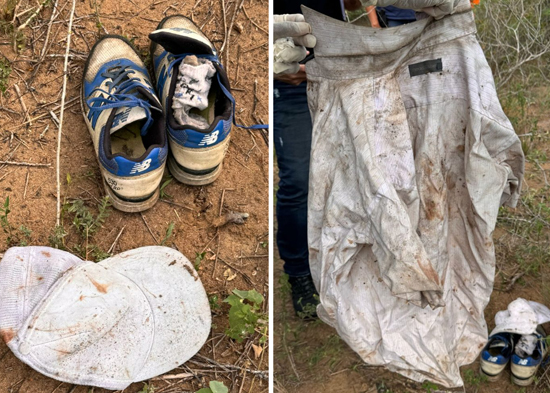 No local, foram encontrados uma camisa social de manga longa na cor branca e um par de tênis, que foram recolhidos pela Polícia para análise.