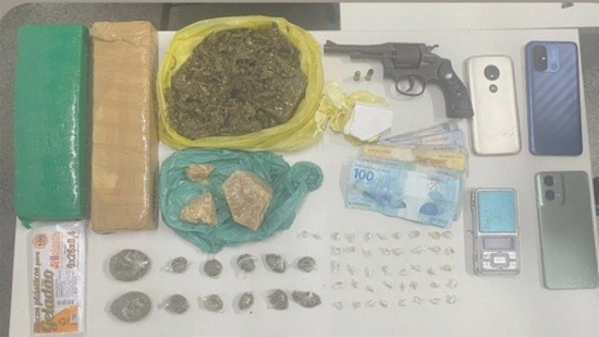 O suspeito, juntamente com todo o material apreendido, foi encaminhado ao Complexo Policial para as providências cabíveis. Entre os itens recolhidos estavam um revólver Taurus calibre .32, munições, porções de maconha, crack e cocaína, além de dinheiro em espécie, balança de precisão e aparelhos celulares.