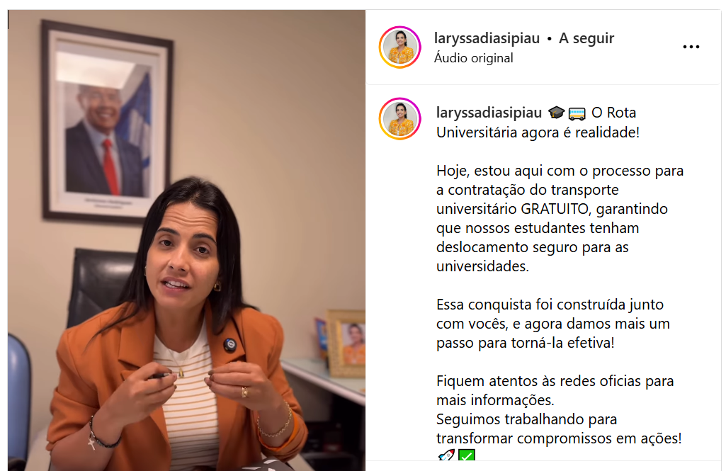 Em fevereiro, a prefeita Laryssa usou suas redes sociais para afirmar que o processo para contratação do transporte universitário gratuito estava em andamento e que os estudantes seriam beneficiados em breve (Confira). Entretanto, até agora, nenhuma ação concreta foi tomada, e os universitários seguem sem o suporte prometido.