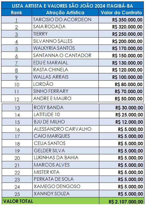 Esses valores não representam os gastos totais com esse tipo de atividade cultural, pois o documento não detalha exatamente os custos com os “festejos juninos”. Portanto, é razoável considerar que esse montante não inclui os gastos reais com o São João 2024, nem com outros eventos culturais de destaque realizados pelo município ao longo do ano.