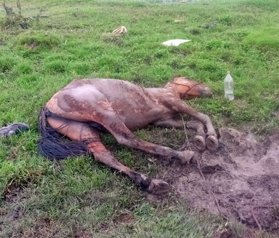 Na manhã desta sexta-feira (25), um cavalo foi encontrado em estado debilitado no bairro Pau D’Arco, em Ipiaú, nas proximidades do Cemitério Jardim da Saudade II. O animal estava caído no chão, sem conseguir se levantar, o que causou preocupação entre moradores da região.