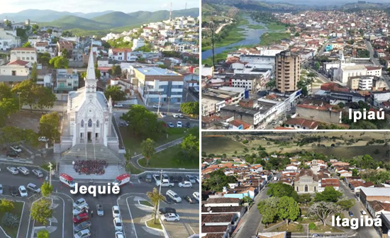 Comparativo visual entre os municípios de Ipiaú, Itagibá e Jequié. Fotomontagem: Ipiaú TV