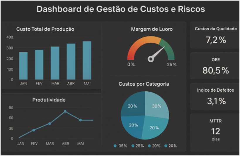 Para garantir uma gestão eficiente dos custos e riscos do negócio, o gestor de custo deve montar e disponibilizar aos tomadores de decisão da empresa um Painel de Monitoramento e Controle de Custos e Riscos Associados. Este painel deve incluir indicadores estratégicos e vitais para a tomada de decisão, acompanhamento e tomada de decisões assertivas na gestão econômico-financeira e operacional da empresa e/ou negócio.