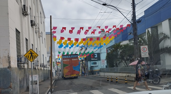 Medida visa preservar a decoração junina e garantir a segurança durante os festejos no centro da cidade. Foto: Avenida Rio Branco, centro comercial de Jequié
