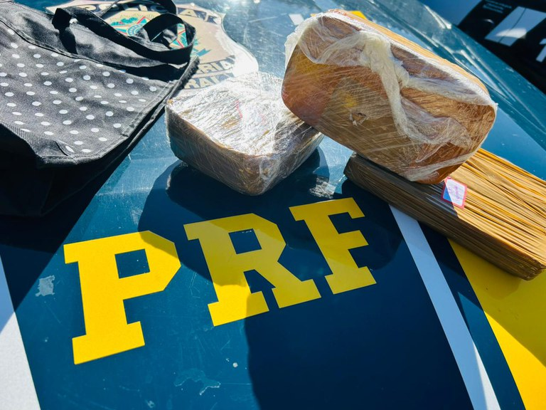 Durante a vistoria no compartimento interno, os policiais localizaram, dentro de uma bolsa, três tabletes de uma substância com características semelhantes à pasta base de cocaína. O material foi pesado e totalizou aproximadamente 3 kg.