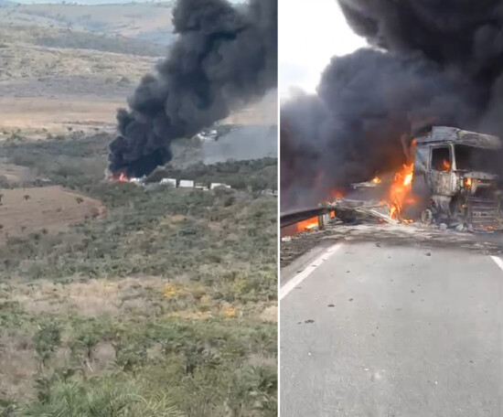 Um grave acidente seguido de incêndio na Rodovia Santos Dumont BR-116 ocorrido por volta das 15h50 desta sexta-feira (24/10), no trecho do município de Nova Itarana, na altura do KM 582 e um motorista morto.