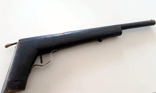 A guarnição se deslocou imediatamente para o endereço. Após a abordagem do suspeito, os policiais encontraram, dentro de uma mochila, uma arma artesanal do tipo garrucha.