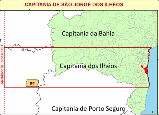 - Capitania Hereditária: A história do município de Ilhéus, que ainda hoje mantém o nome da antiga capitania, teve início em 1534, quando o fidalgo português Jorge de Figueiredo Correia recebeu a Capitania de Ilhéus por Carta Régia de 25 de abril, assinada em Évora. A capitania tinha uma extensão de 50 léguas em todas as direções, começando na Ponta da Baía de Todos os Santos, no lado sul, e estendendo-se pela costa.