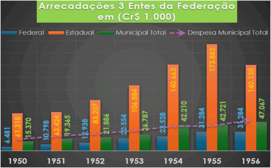 - Evolução da Arrecadação dos Entes da Federação: A crescente elevação da arrecadação tributária estadual, no território de Ilhéus, foi cada vez mais, sendo dominada pelo governo do estado, sediado em Salvador. Ao passo que as despesas municipais também cresciam acima da arrecadação própria.