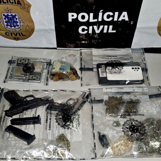 Durante as diligências, os policiais apreenderam duas pistolas — uma calibre .380 com 13 munições e outra calibre .765 com seis munições —, além de três munições calibre .38. Também foram encontrados 86 buchas de maconha, 134 pedras de crack, oito comprimidos de ecstasy, uma porção de cocaína, duas balanças de precisão, três celulares, um tablet e a quantia de R$ 354,00 em espécie.