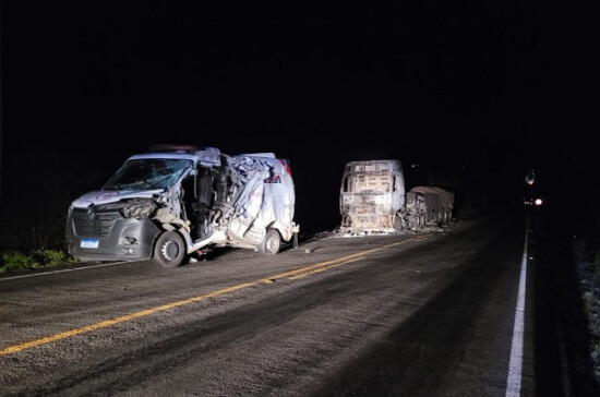 Ambulância de Guanambi bate em caminhão incendiado na BA-026 trecho de Pé de Serra