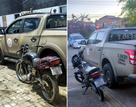 A Polícia Rodoviária Estadual (CIPRv/Itabuna) registrou duas apreensões de motocicletas com restrição de furto ou roubo nesta sexta-feira (15), durante fiscalizações realizadas no distrito de Japomerim e na cidade de Itagibá.