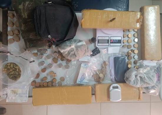 No interior do material recolhido, foram encontradas porções de drogas já preparadas para comercialização, além de uma quantia em dinheiro que ultrapassa R$ 600. Durante a continuidade da ação, os militares apreenderam ainda quatro tabletes de maconha, somando mais de 4 kg, duas balanças de precisão, uma peça de roupa camuflada e outros itens utilizados para embalar substâncias ilícitas.