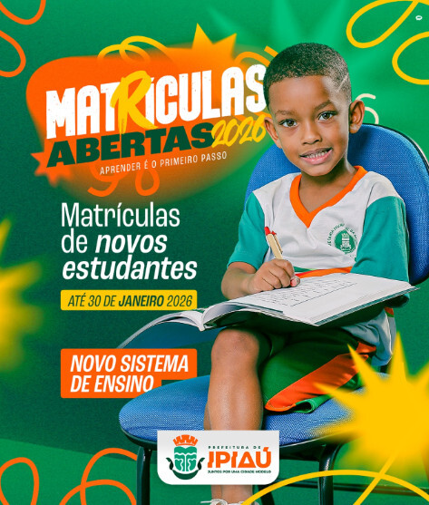 A Prefeitura de Ipiaú, com um novo sistema de ensino, reafirma seu compromisso com a garantia do acesso à educação pública de qualidade e com a construção do futuro das crianças, adolescentes e jovens do município . Procure a unidade escolar e garanta a vaga até 30 de janeiro de 2026 . ( José Américo Castro /DECOM-PMI).