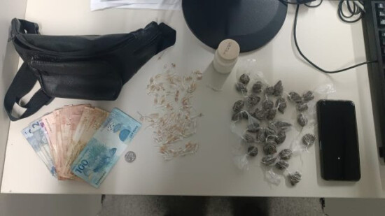 Na revista pessoal, os policiais identificaram um jovem de 18 anos e um adolescente de 17. Com o maior de idade, foi apreendida uma pochete contendo 91 pedras de crack, 30 buchas de maconha e a quantia de R$ 386 em dinheiro. Com o adolescente, foi encontrada uma porção de maconha.
