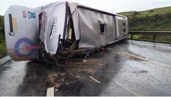 Um grave acidente envolvendo um ônibus da empresa Rota Transportes mobilizou equipes de resgate na madrugada desta segunda-feira (23). O veículo, que transportava 41 passageiros no itinerário Salvador – Vitória da Conquista, tombou na altura do KM 597 da BR-116, em um trecho conhecido como Rodovia Santos Dumont, no município de Irajuba.