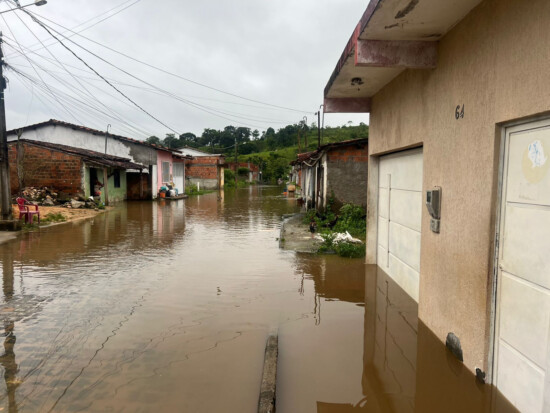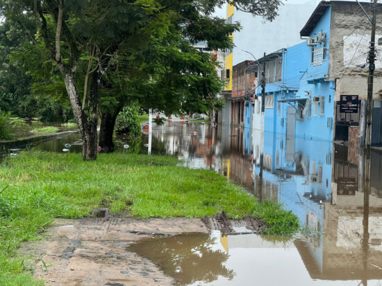 Na Rua Ataíde Ribeiro, as águas atingiram a área frontal de algumas residências e da Pousada Central. Como medida preventiva, o trecho foi devidamente sinalizado com cones, orientando motoristas a evitarem o tráfego no local para não gerar marolas que possam direcionar a água para o interior dos imóveis.