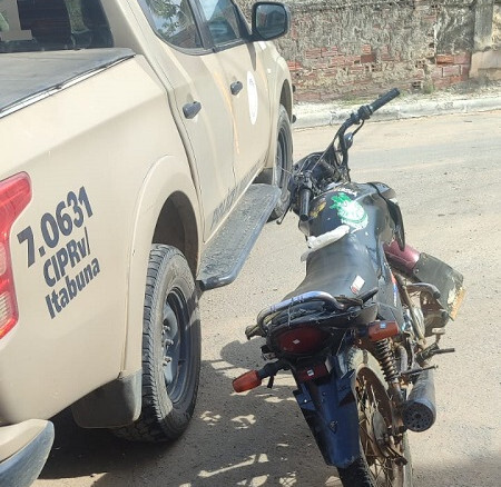 Ao inspecionarem o veículo abandonado, os agentes constataram que a numeração do motor estava raspada. Além disso, a consulta ao Número de Identificação do Veículo (NIV) apontou para uma motocicleta Kasinski/Sera 125, placa NTM-3354, licenciada em Camamu. No entanto, os dados cadastrais não eram compatíveis com as características físicas do veículo encontrado no local.