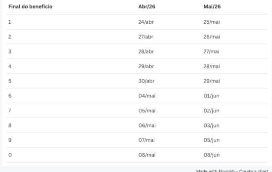 A primeira parcela do 13º salário será creditada entre os dias 24 de abril e 8 de maio, e a segunda entre os dias 25 de maio e 8 de junho.