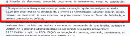 Essas denúncias de abuso de autoridade e sobrecarga ferem a Cláusula Quinta (5.2), que exige que a empresa arque com todos os encargos trabalhistas e sociais , além da Cláusula Nona (9.2.7), que obriga a contratada a garantir condições de segurança e higiene adequadas aos seus empregados.